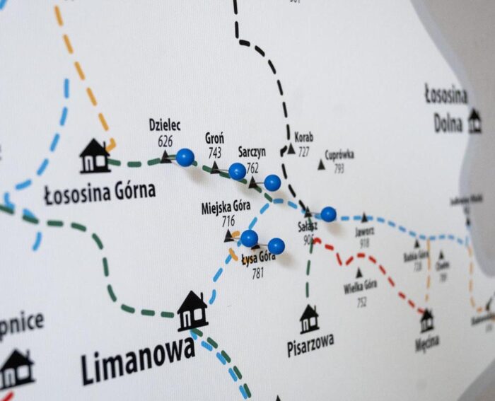 Kontakt – personalizowana mapa Beskidu Wyspowego na pinezki: