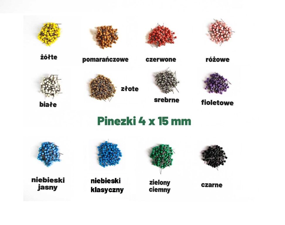 - długość całkowita pinezki: 15 mm (4mm główka + 11 mm nóżka).